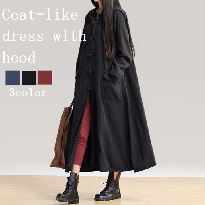 楽天市場 フード付きコート風ワンピ ワンピース レディース 黒 白 カジュアル 夏 長袖 きれいめ 春 50代 上品 マキシ 40代 おしゃれ 30代 代 カジュアル 夏服 大人 オフィス スカート お洒落 上品 可愛い ブランド かわいい 春服 秋服 大きいサイズ ファッション